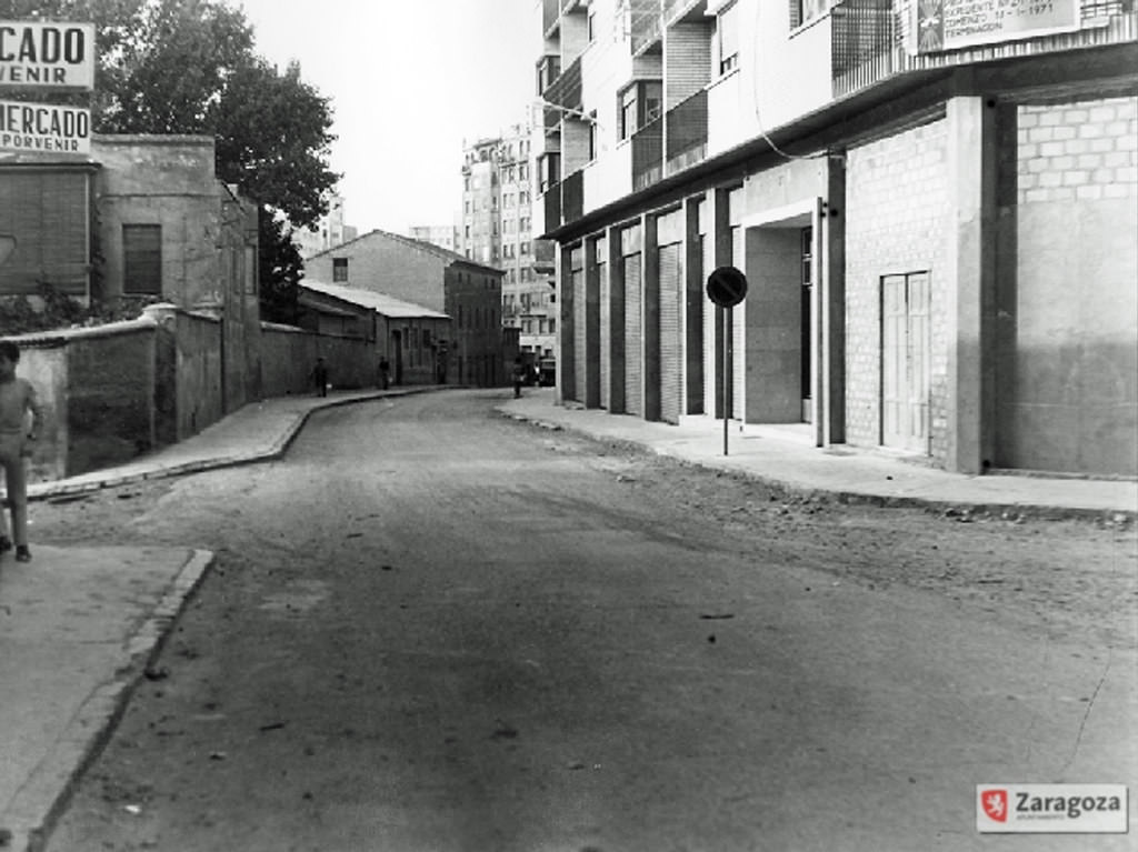 The 1970s were very lavish in Zaragoza in terms of demolitions, whether by hand or machine, or both combined. This is one more example in an area far from the center. It is a picture of the section of Martín Cortés street between Escosura, from where the photograph was taken, and José García Sánchez, in the background. On the left, demolition by hand of the old plot of number 33 of the old Roche street, now Escosura, when this was the last home on what was then a long dirt-floored street that reached here from the Zaragoza-Valencia highway. , although it then continued in the form of a path that, after crossing the bank and the Rasa irrigation, to the left and through a path led to the Mosquetera path, and to the right, to the nearby Mobile Material and Construction Workshops. and even to the Cariñena railway station.