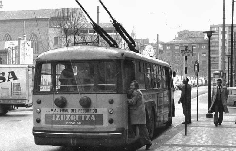 To the left, and immediately, the walls behind which the young and Jesuit church of the Mother of El Salvador was demolished, barely as an advertising support for traditional and racial shows. Immediately, the beginning of the Paseo de las Damas towards the Camino de las Torres and, in the background, the unique collegiate mass of the Sacred Heart, behind the tree-lined roundabout of Sasera. On the right, a tram composition pulled by Unit 51 descends from Torrero, which, in service since 1925, was retired a couple of years later, and scrapped in 1973. The line was closed a year later. after 88 years of service, to clear the streets of electric provincial relics.